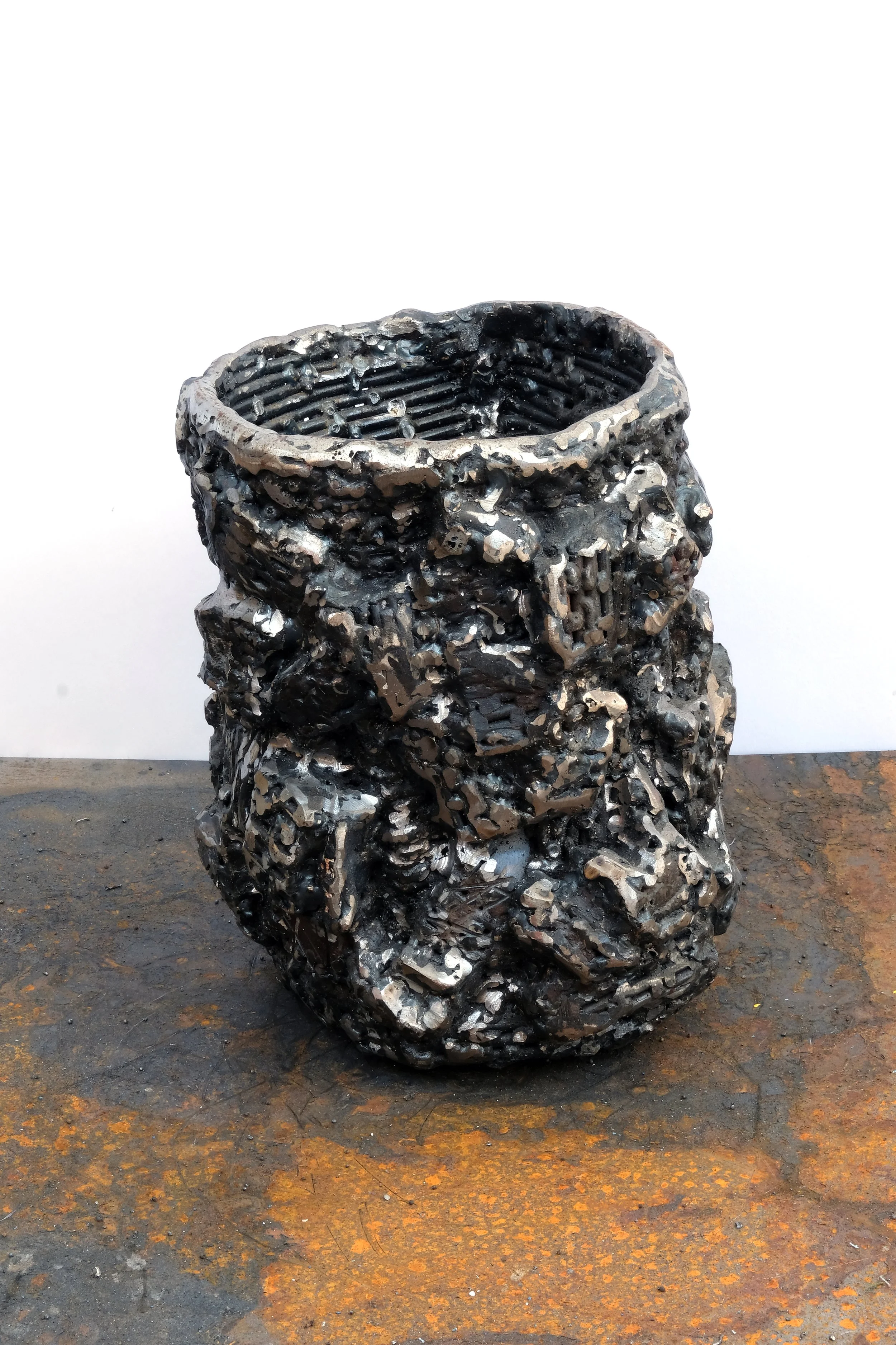 Steel, graphite, paint, patina